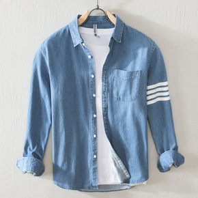 2020新款男士条纹衬衫 韩版修身潮流衬衣 春秋季...