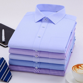 2021新款纯色弹力免烫职业装抗皱男式工装竹纤维衬...