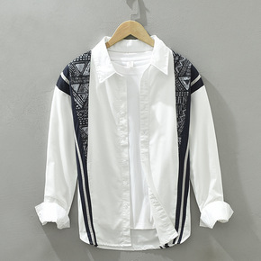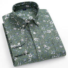 新款牛津纺印花衬衫男时尚休闲外穿中青年百搭衬衣潮流...