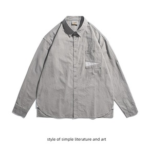 马登工装复古磨毛牛津纺衬衫商务休闲打底内穿搭长袖上...