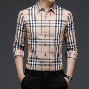 品牌男士长袖白衬衫商务职业正装韩版高档休闲衬衣格纹...