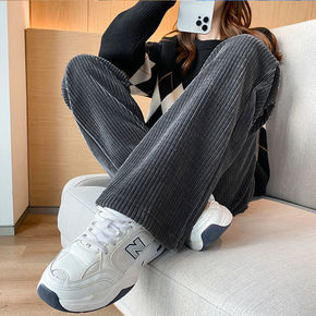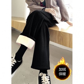 雪尼尔阔腿裤女2021新款垂坠感秋冬款高腰加绒加厚...