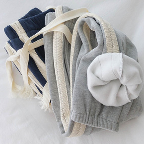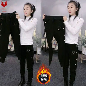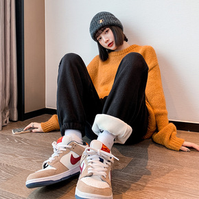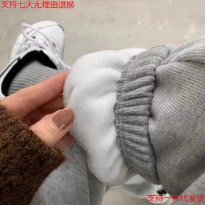 收口运动裤女加绒加厚秋冬宽松束脚裤学生显瘦长裤子外...