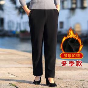 中老年宽松裤子秋冬加绒加厚妈妈休闲裤保暖外穿黑色长...