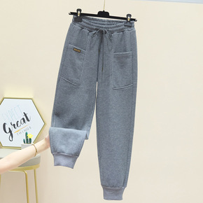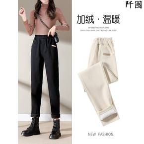秋冬季加绒加厚新款休闲裤女外穿宽松显瘦高腰小脚打底...