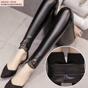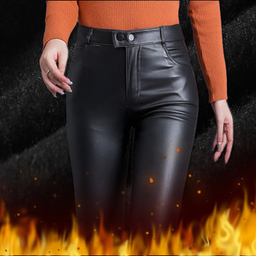 皮裤女加绒弹力PU皮裤女秋冬打底裤外穿加绒加厚高腰...