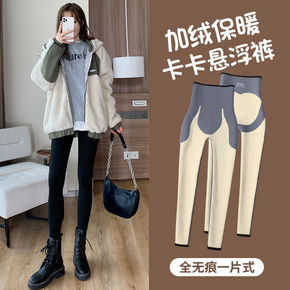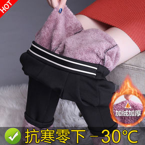 螺纹羊绒打底裤女外穿秋冬季加绒加厚高腰收腹一体保暖...