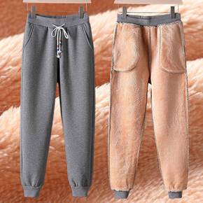 裤子女冬秋冬加绒裤子女宽松休闲哈伦加厚羊羔绒冬季保...
