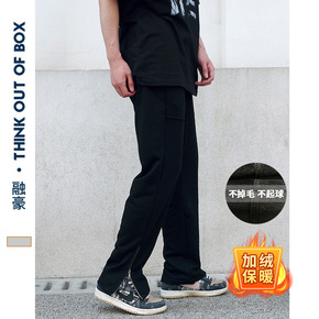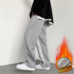 直筒裤子男秋冬高街潮牌宽松运动裤潮流ins加厚加绒...