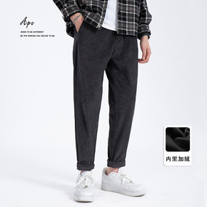 APO 冬季新款灯芯绒加绒加厚锥形休闲裤男2021...