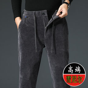 雪尼尔裤子男秋冬款加厚休闲裤男士宽松直筒加绒运动裤...
