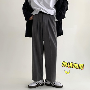 加绒休闲裤男生冬季韩版潮流宽松纯色百搭长裤男士西裤...