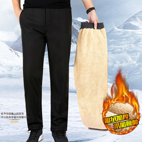 加绒男裤秋冬款长裤男士休闲裤加厚爸爸羊羔绒裤子男棉...