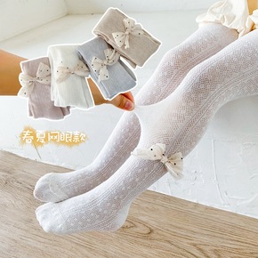 2021儿童连裤袜子秋新款精梳棉韩版亮丝蝴蝶结无骨...