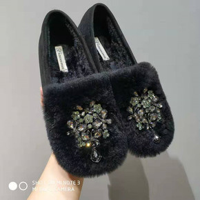 2021新款韩版秋冬季兔毛鞋女百搭时尚外穿平底棉鞋...