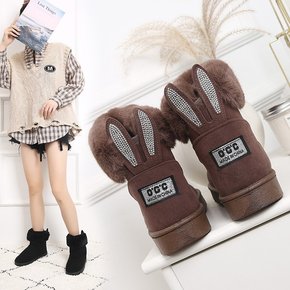 新款雪地靴时尚百搭兔耳朵保暖女靴平底舒适休闲学生孕...