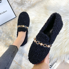 羊羔毛豆豆鞋女秋冬平底加绒单鞋时尚百搭软底毛毛鞋外...