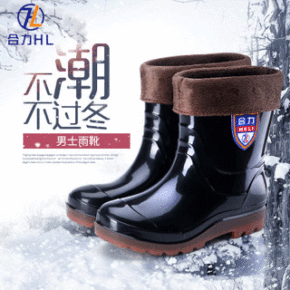 春秋插秧高筒劳保男雨鞋养殖田地黑色绒加厚胶鞋长筒水...