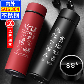 壶之冠刻字智能测温304不锈钢保温杯男女网红创意个...