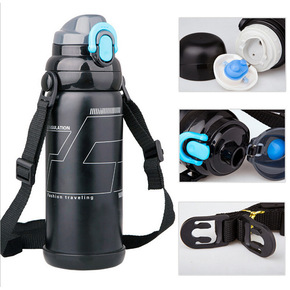 不锈钢双盖保温杯大容量户外运动水壶背带便携车载水杯...