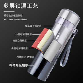 大容量304不锈钢保温杯便携吊绳水杯带滤网男女士泡...