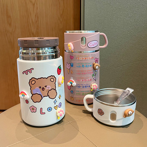 渐变色保温杯女便携学生韩版清新文艺大容量不锈钢茶杯...