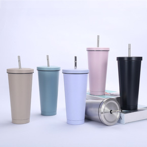 750ml不锈钢吸管杯双层真空咖啡杯304保温杯车...