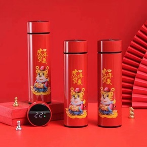 新品虎年保温杯吉祥红智能温显杯子虎年贺岁中国红水杯...