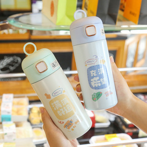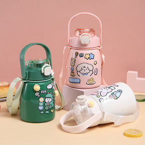 网红大肚杯不锈钢吸管弹跳水壶大容量卡通女学生直饮吸...