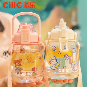 希乐大容量水杯女高颜值儿童学生水壶吸管杯子塑料可爱...