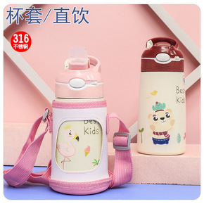 弹跳网红新款卡通背带吸管大嘴鸭儿童壶 杯套儿童31...