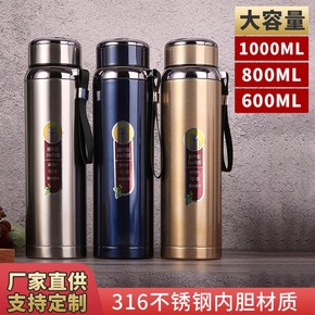 新款不锈钢大容量保温杯商务杯户外便携带提绳保温旅行...
