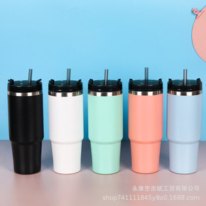 跨境渐变色车载吸管杯304不锈钢保温杯户外便携礼品...