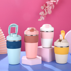 跨境316不锈钢保温杯双饮水杯学生男女简约ins咖...