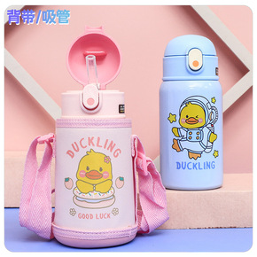 可爱鸭子保温杯户外背带水壶幼儿园宝宝水杯高颜值学生...