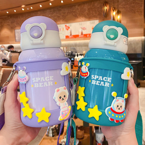 儿童保温杯女316不锈钢水杯 可爱宝宝弹跳吸管杯大...
