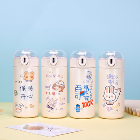 创意卡通图案弹跳杯带吸管透明盖保温杯便携男女学生水...