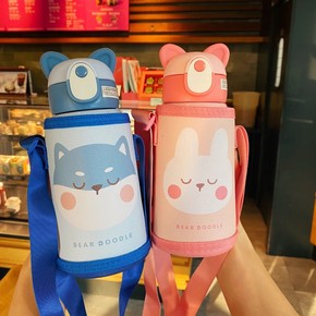熊小斗瞌睡儿童保温杯男女学生卡通大肚杯支持代发...
