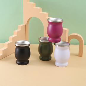 新款不锈钢8oz马黛杯葫芦形双层真空迷你大肚保温杯...