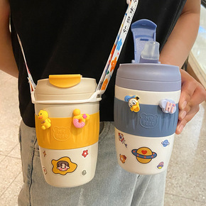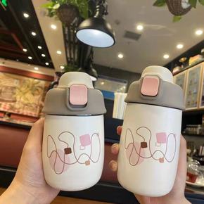 可爱保温杯女士高颜值ins风带吸管水杯儿童316不...