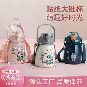 网红大肚杯卡通304不锈钢大容量保温杯吸管水杯儿童...