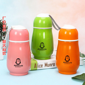 儿童不锈钢保温杯户外便携带提绳企鹅杯卡通学生水杯礼...