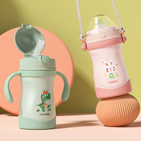 新款手提儿童保温杯316不锈钢吸管杯卡通可爱小学幼...
