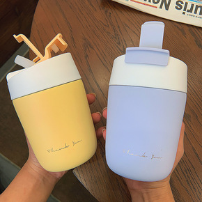 简约保温杯女ins风水杯便携带吸管奶茶杯网红可爱双...