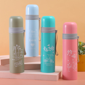 学生不锈钢带杯套保温杯女家用简约吸管水杯儿童便携小...