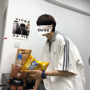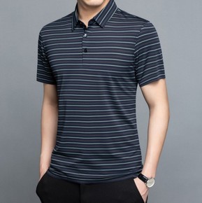 2021夏季短袖T恤男中青年翻领POLO衫宽松条纹...