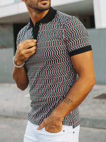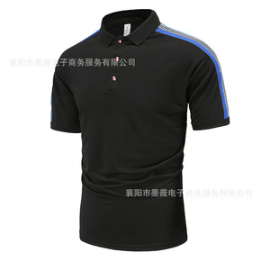 2021年亚马逊 新款条纹印花翻领短袖套头休闲男T...