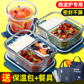 上班族玻璃饭盒微波炉加热专用碗带盖打包水果便当盒带...