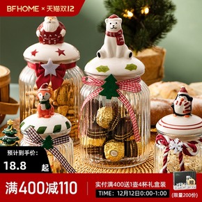 半房圣诞糖果密封罐小礼物零食收纳盒食品级玻璃储物罐...
