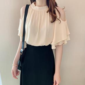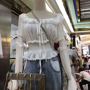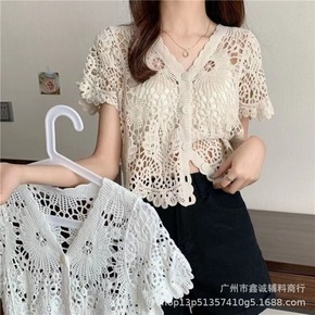 夏季法式小众v领镂空钩花蕾丝衫女甜美小心机宽松百搭...